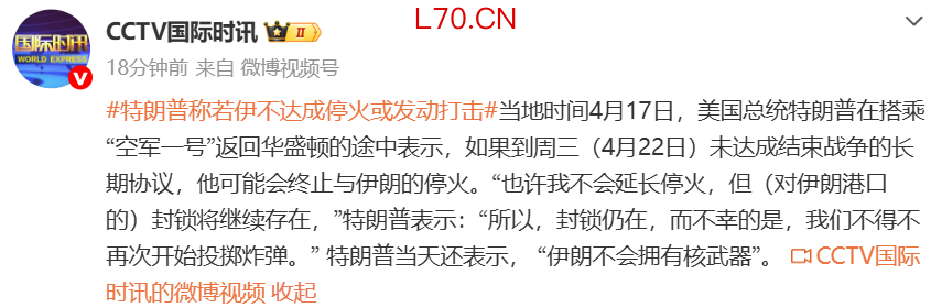 特朗普:若伊不达成停火或发动打击特朗普:若伊不达成停火或发动打击