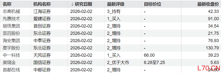 Wind数据显示,4月8日,共有30只个股获券商买入评级,其中3只个股公布了目标价格。按最高目标价计算,亿纬锂能、华友钴业、牧原股份目标涨幅排名居前,涨幅分别达60.31%、42.41%、26.12%。从评级调整方向来看,29只个股评级维持不变,1只个股为首次评级。此外,有2只个股获多家券商关注,兴发集团、金山办公获评级数量居前,分别有2家、2家券商给予评级。从获买入评级个股所属Wind行业来看,资本货物、材料Ⅱ、技术硬件与设备买入评级个股数量最多,分别有8只、6只、4只。