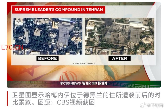 美媒发布卫星图,显示哈梅内伊住所遭袭的前后对比景象美媒发布卫星图,显示哈梅内伊住所遭袭的前后对比景象